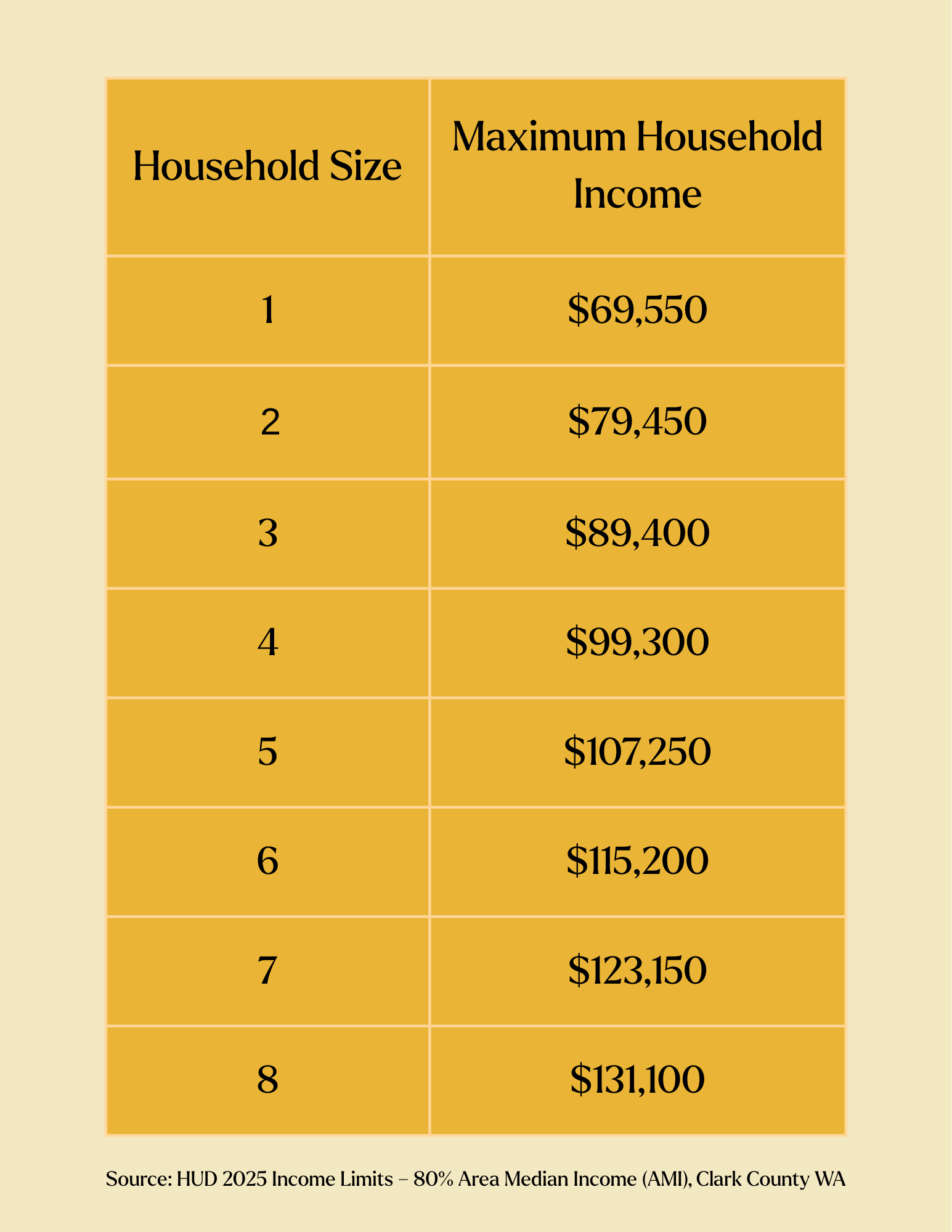 ✔ Cumplir los requisitos de elegibilidad de ingresos (por debajo del 80% de la renta media de la zona AMI).